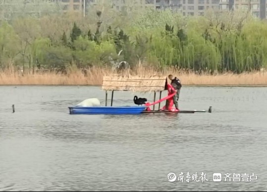 这两只黑天鹅宝宝浑身披着一层细腻的灰色绒毛,模样娇小可爱,正依偎在父母身旁,为春日的公园增添了无限生机与活力。为了确保此次黑天鹅的繁育成功,德州市城市管理局长河公园办公室提前制定了专项管护方案,全面保障孵化过程的顺利进行。公园特别组建了一支监护小队,队员们在队长的带领下,不仅承担起日常投喂与环境保障工作,还定期为黑天鹅夫妇补充营养丰富的水草和谷物,确保它们的体能充沛,孵化过程稳定。同时,工作人员还加强了湖区巡查,优化水质环境,清理栖息区域杂物,为黑天鹅营造了安全、舒适、适宜的繁育环境。