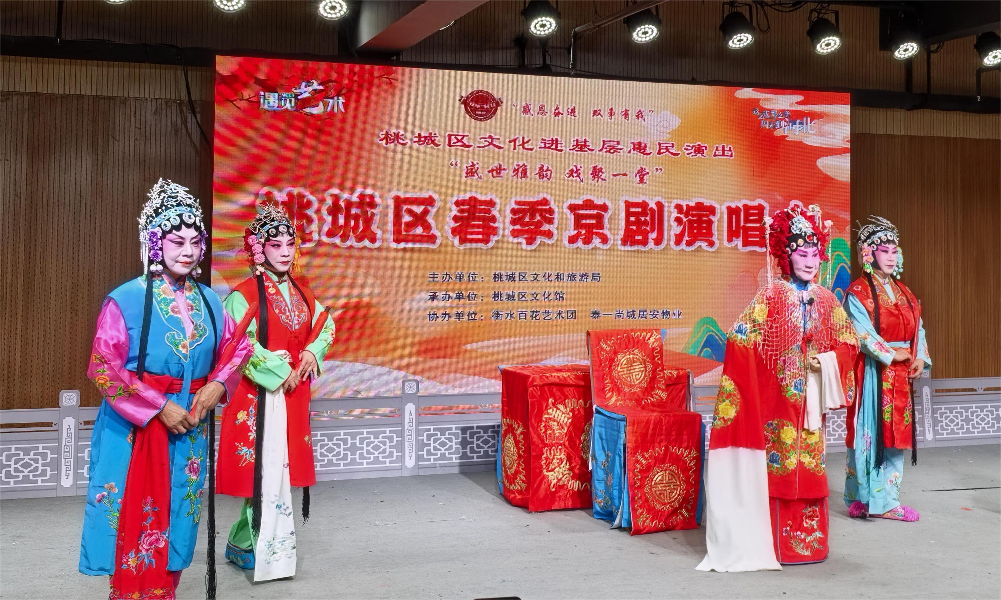 此次活动由桃城区文化和旅游局主办,桃城区文化馆承办,衡水百花艺术团、泰一尚城居安物业协办。“此次演出从筹备到登台历时两个月,参演的衡水百花艺术团成员多为退休职工和资深票友,平均年龄超过60岁。”桃城区文化馆馆长谢博洋介绍道,举办这样的京剧演唱会,旨在让传统艺术走进普通市民生活,为京剧爱好者提供展示交流的平台,也让更多年轻人感受国粹的魅力。今后将继续推出更多惠民演出,把京剧这门传统艺术送到老百姓家门口。